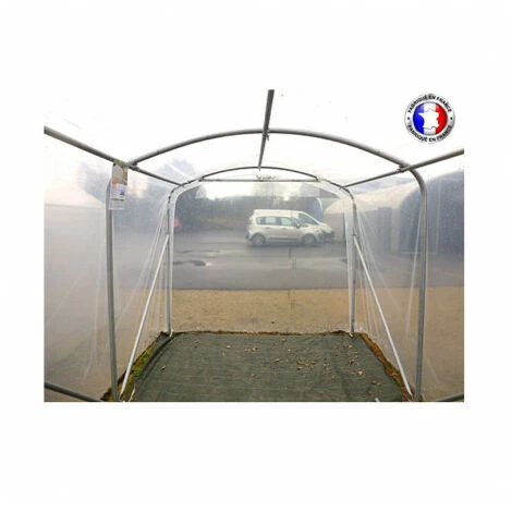 Elle offre une largeur au sol de 2,30 m et une hauteur de 2,10 m. Chaque élément de la serre a été choisi pour ses qualités et sa durée de vie : bâches, garanties 5 ans, clips en inox, fil Deltane, arceaux en 40 mm.