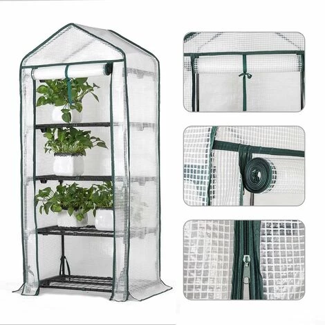 Emballage: Une serre à 4 niveaux avec une couverture en PE robuste, une porte à enroulement et des instructions simples pour un montage facile.