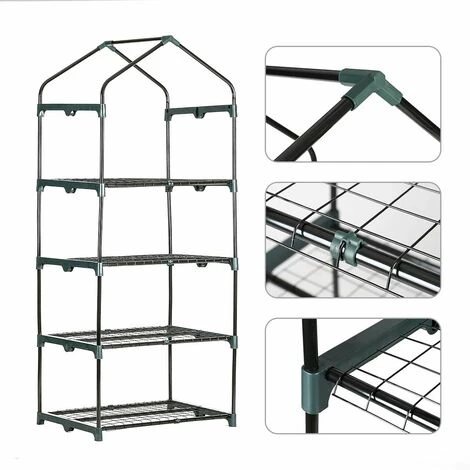 Construite avec 4 étagères câblées, la serre de plain-pied vous permet de placer de petites plantes.