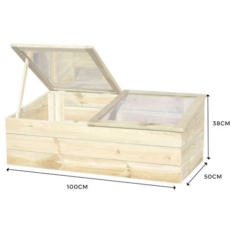 Cette serre se présente sans fond, elle s’ouvre en deux parties vitrées en plexiglas transparent, et montées sur des charnières apparentes.