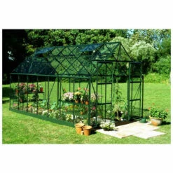 Inclus : porte coulissante, deux lucarnes de toit, deux gouttières avec évacuation pluviales à chaque extrémité, visserie et clips en inox base en acier galvanisée laqué gris (+ 6 pattes d’ancrage) permettant d’installer la serre directement sur le sol en la stabilisant et la rigidifiant