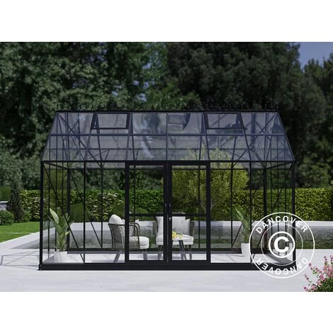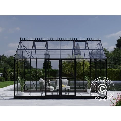 Serre, orangerie ou cadre élégant en matériaux solides et durables comme l’aluminium et le verre trempé. Le verre trempé de 4 mm d’épaisseur transmet parfaitement la lumière, ce qui vous aidera à créer les conditions de croissance idéales à l’intérieur de la serre. Les aérations du toit contribuent également à maintenir un environnement de croissance parfait, car vous pouvez les utiliser pour réguler l’humidité et la température. La double porte coulissante permet un accès facile, une bonne ventilation et peut être verrouillée à l’aide de la serrure intégrée. La serre est équipée de gouttières et de tuyaux de descente intégrés. L’élégante serre/orangerie est livrée avec une base en aluminium thermolaqué de 10 cm pour une stabilité parfaite et une hauteur supplémentaire. Que vous utilisiez cette magnifique structure comme une serre, une orangerie ou une tonnelle — ou une combinaison des deux — l’élégante construction sera partout magnifique et accueillante et prolongera la saison de jardinage de plusieurs mois.