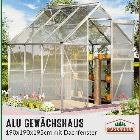 Serre de jardin ‘SUNLIGHT’ avec fenêtre de toit, gouttière et volume de 5,85 m³