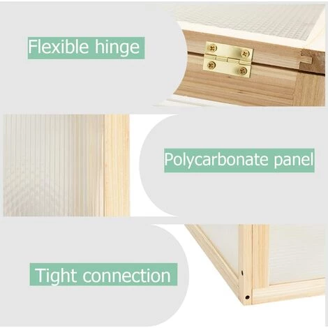 - [Structure & Connexions Durables] La structure de cette serre pour plantes est fabriquée en bois de sapin naturel, dont la surface avec peinture anticorrosion qui fait la serre est imperméable et anti-insecte. En outre, la stabilité et la résistance de la serre sont améliorées pour les connecteurs métalliques. Cela permet une utilisation longue durée.