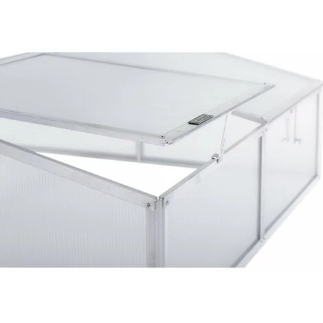 : Vous pourrez désormais faire poussez vos propre fruits et légumes sans pour autant disposer d’un grand espace. Notre mini serre Rosa vous permettra de cultiver des aliments de qualité. Ces nombreuses ouvertures vous permettront de faire bénéficier de températures optimales à vos plantes. Structure : Aluminium 0.8-1 mm. Couleur : Argenté. Matière Façade : Panneaux doubles en polycarbonate 4 mm. Kit fondation : Base en aluminium: 1.08 x 1.08 x 0.01 m, épaisseur : 0.8-1 mm. Porte(s) : 4 ouvertures manuelles de toit. Surface extérieure : 1.19 m². Extérieures : 1,10 x 1,08 x 0,4 m Hauteur mur : 0.30 m. : – Polycarbonate léger (facile à monter et à transporter) – Isolant garantissant un climat optimal dans la serre (40% déconomie de chaleur) – Diffusion totale de la lumière (Traité anti-UV) – Stabilité de la structure métallique renforcée par laluminium – Traitement anti rouille – Assemblage facile et sans entretien – Équipée de 4 ouvertures manuelles – Poids maximum supporté/m² : 3 kg. Colisage : 1 colis : – 1,1 x 0,56 x 0,05 m, 5 kg.