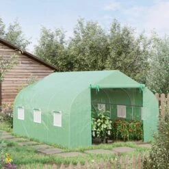 Vous souhaitez disposer d’un grand et beau potager en pleine santé pour des récoltes fructueuses toute l’année ? Craquez pour la serre de jardin 18m² avec moustiquaire intégrée !Simple à installer, la serre de jardin 18m², lorsqu’elle est fermée, vous permet de garder vos plantations de fruits et légumes à l’abri du froid et de l’humidité. Grâce à sa bâche en PE 140gr/m² anti-UV soyez assurés que vos jeunes poussent grandissent dans un microclimat idéal à leur développement. Relevez la bâche à mi-hauteur d’un côté ou bien des deux, et offrez à vos plantations soleil et aération aussi longtemps que nécessaire. En effet, grâce aux moustiquaires intégrées, vos fruits et légumes pourront pousser tranquillement tout en étant protégés des oiseaux, insectes ou encore rongeurs. Protégées du froid, de la pluie et des nuisibles, vos jeunes pousses pourront évoluer dans une grande serre de 18m² et disposer de tout l’espace dont elles ont besoin pour se développer. Grâce à sa grande porte zippée de L.125 x l.180 cm, vous pourrez entrer et sortir aisément de la serre avec tout votre matériel de jardinage et circuler librement pour arroser, désherber ou récolter vos fruits et légumes. Composée de 7 arceaux, de 4 barres de renforts, d’une structure en acier galvanisée et de fixations supplémentaires avec cordes et sardines, cette serre vous garanti stabilité et robustesse même en cas de fortes pluies, neige ou grêle. Pour encore plus de stabilité et une meilleure protection de vos plants, nous vous conseillons également d’enterrer les extrémités de la bâche. Assurez-vous des fruits et légumes goûteux et délicieux tout l’année, grâce à la serre tunnel avec moustiquaire 18m² ! Dimensions de la serre tunnel de jardin 18m² avec moustiquaire- Dimensions hors tout : Longueur 300 CM x largeur 600 CM x Hauteur 200 CM- Surface : 18m²- Matériaux : Structure en acier galvanisée – Bâche PE 140gr/m² anti-UV- Coloris : Vert- Nombre d’arceaux : 7- Tubes : 25 MM de diamètre- 1 porte d’entrée zippée : L.125 x H.180 CM- 2 clips pour tenir la porte- Bâche relevable à mi-hauteur des 2 côtés- Moustiquaire sur les côtés- Fermeture zippée sur les longueurs pour relever la bâche + 12 crochets en plastique verts pour l’accrocher- 4 barres de renfort (anti tempête)- 4 cordes + 4 sardines pour fixation au sol – HORS CORSE -article non livrable en Corse
