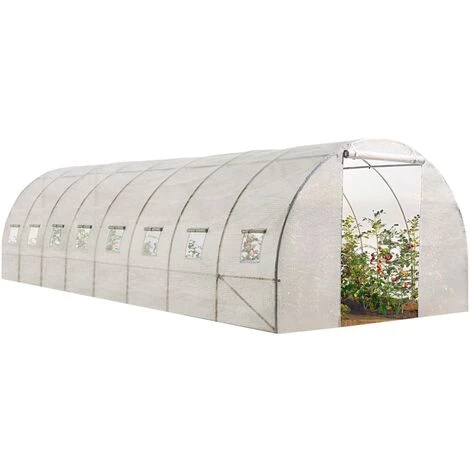 Descriptif grande serre de jardin tunnel maraîchère Pro galvanisée 24m² 8x3x2 m blancheIdéale pour cultiver efficacement en toutes saisons ! Cette serre géante protège vos cultures en hiver et permet de booster leur croissance au printemps et en été.Ses 9 arceaux renforcés et sa bâche armée 140 gr/m² indéchirable lui confèrent robustesse et longévité quelles que soient les conditions climatiques.Elaborée avec l’aide de professionnels du jardinage, elle s’adapte à toutes les situations.Ses 8 ouvertures à moustiquaires permettent une aération optimale tout en protégeant vos cultures des insectes et autres parasites. Sa large porte zippée est très pratique et très fonctionnelle.Dimensions de la serre de jardin tunnel- Tubes en acier galvanisé 25mm- Surface totale 24 m²- Longueur 8m- Largeur 3m- Hauteur 2m- Equipée de quatre barres anti-tempêteAnti-UV Bâche de rechange disponible également sur notre boutique en ligne Livraison par transporteur à votre domicile (sauf Corse, dans ce cas il faut demander un devis préalable).Merci de nous fournir un numéro de Portable de préférence pour la prise de rendez-vous pour la livraison. – HORS CORSE -article non livrable en Corse