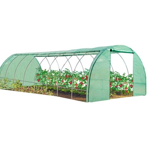 Description de la serre tunnel de jardin 4 saisons 24M² verte Nous avons sélectionné pour vous la serre qui fera rougir vos légumes ! Devenez un professionnel du jardinage avec cette grande serre de jardin 24M² 4 saisons ! Profitez dès à présent d’une serre robuste pour faire pousser en toute tranquillité toutes sortes de plantations ! Les généreuses dimensions de la serre vous permettent de travailler sereinement. Profitez de ses 2 mètres de hauteur pour vous déplacer sans gène ! D’une longueur de 8 M par une largeur de 3M, vous pouvez aisément créer un potager diversifié. La serre est composée d’une structure en acier galvanisé ainsi que d’une bâche armée de couleur verte indéchirable ! Cette bâche armée protège vos plantations des gelées et créée un environnement propice à la culture. Afin de contrôler la température intérieure, la serre est munie de 8 fenêtres moustiquaires. Vous pouvez ainsi créer un courant d’air dans votre serre sans qu’aucun insecte ou moustique ne puisse rentrer ! Votre serre a un atout supplémentaire non négligeable ! Vous pouvez la relever à n’importe quelle hauteur et ainsi vous laissez vos plantations profiter des rayons du soleil !Dimensions de la serre tunnel de jardin 4 saisons 24M² verte – Dimensions de la serre : Longueur 8M x largeur 3M x Hauteur 2M- Structure en acier galvanisé 9 arceaux- Diamètre des tubes : 25 mm – Livrée avec une bâche armée verte 140 gr en polyéthylène – 8 fenêtres avec filet moustiquaires – Dimensions de la porte : largeur 125 cm x Hauteur 180 CM – Bandes verticales zippées sur les longueurs pour relever la bâche à hauteur souhaitée + 18 crochets de fixationRetrouver toutes nos serres et toutes nos bâches de serres en ventes sur notre site internet ! – HORS CORSE -article non livrable en Corse