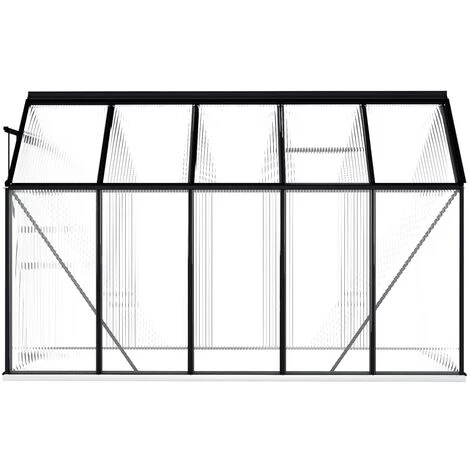 Cette serre spacieuse a une surface totale de 9,836 m³. Elle peut accueillir un nombre considérable de plantes et sera une excellente solution pour protéger vos plantes du froid. Fabriquée en panneaux de polycarbonate, cette serre solide est résistante aux UV et isolée thermiquement. La serre a une construction en aluminium robuste et sans entretien avec un cadre de base (fabriqué de 4 profils forts) pour plus de stabilité. Le système de gouttière permet efficacement l’évacuation de l’eau, et l’évent de toit assure une ventilation optimale par temps chaud. Les panneaux de toit sont fixés avec des clips métalliques, garantissant sa durabilité et son utilisation à long terme. Notre serre est facile à assembler. Veuillez noter que le toit de notre serre ne peut pas supporter de fortes chutes de neige.