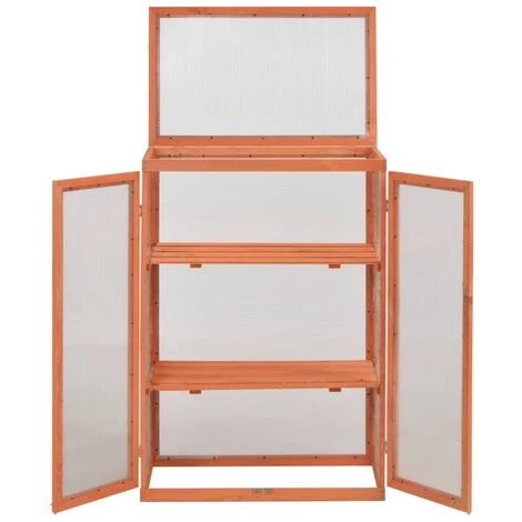 Cette serre de jardin en bois est faite de panneaux de PC et de bois résistant qui le fait durable. Elle est dotée de 2 étagères qui offrent amplement assez d’espace pour vos plantes, fleurs ou herbes. Il est facile de planter ou d’enlever les plantes grâce au couvercle rabattable. Cette serre spacieuse complétera votre espace extérieur. Elle peut accueillir un nombre considérable d’herbes et sera une excellente solution pour protéger vos plantes du froid. La serre froide est facile à assembler. Veuillez noter que le toit de notre serre de jardin ne peut pas supporter de fortes chutes de neige.