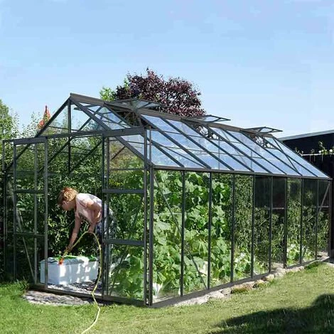 La serre est Ă©quipĂ©e de 6 lucarnes de toit avec une double porte coulissante et une base qui facilite le montage et protège le verre. La serre peut ĂŞtre utilisĂ©e par des jardiniers dĂ©butants jusqu’aux jardiniers confirmĂ©s.