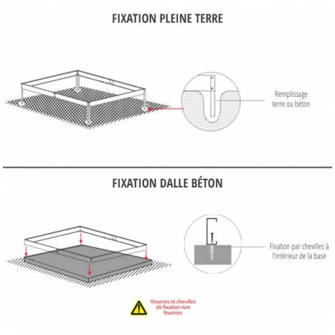 - Base incluse en acier galvanisĂ© avec pieds d’ancrage
