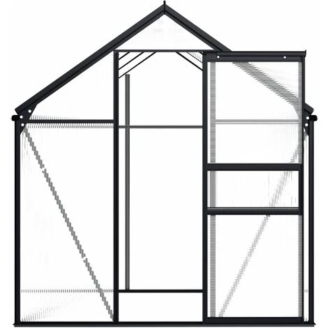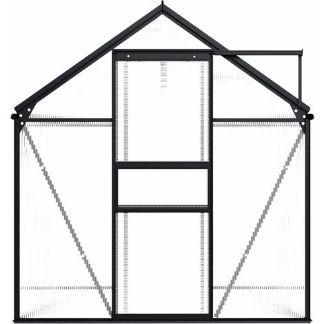Cette serre spacieuse a une surface totale de 3,61 m². Elle peut accueillir un nombre considérable de plantes et sera une excellente solution pour protéger vos plantes du froid. Fabriquée en panneaux de polycarbonate, cette serre solide est résistante aux UV et isolée thermiquement. La serre a une construction en aluminium robuste et sans entretien pour plus de stabilité. Le système de gouttière permet efficacement l’évacuation de l’eau, et l’évent de toit assure une ventilation optimale par temps chaud. Les panneaux de toit sont fixés avec des clips métalliques, garantissant sa durabilité et son utilisation à long terme. Notre serre est facile à assembler. Veuillez noter que la fondation n’est pas incluse et le toit de notre serre ne peut pas supporter de fortes chutes de neige.Couleur : anthracite et transparentMatériau : aluminium, polycarbonateDimensions : 190 x 190 x 125/195 cm (L x l x H)Surface du terrain : 3,61 m²Capacité : 5,776 m³Épaisseur du panneau : 4 mmRésistance aux UVL’assemblage est requisNous ne livrons pas en Corse.