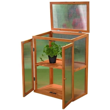 Ajoutez cette serre à votre espace extérieur et profitez de ses avantages attrayants. Le cadre est en épicéa brun clair et se concentre sur les vitres transparentes qui décorent le devant et le dos ainsi que la surface du modèle. Le design classique est perfectionné par les deux portes qui s’ouvrent à l’aide de boutons. Grâce au couvercle à charnière, il n’y a aucun problème lors de l’arrosage ou de l’enlèvement des plantes. Bien entendu, la serre protège également vos fleurs des variations climatiques. Placez le modèle fonctionnel et décoratif là où vous aimeriez voir pousser vos plantes – sur la terrasse, sur le balcon ou dans le jardin.