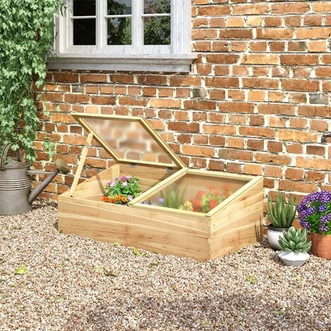 Cette jolie mini serre de jardin avec double toit ouvrable séparemment vous permettra de protéger vos plantes, légumes, semis, etc. durant l’hiver et le printemps. Sa conception et fabrication en bois de sapin pré-huilé et panneaux de polycarbonate vous assureront protection et rendement. Caractéristiques : – Mini serre de jardin mélant sobriété et élégance – Conception et fabrication de qualité en bois de sapin pré-huilé et panneaux de polycarbonate pour protéger vos plantes, légumes, semis, etc… et ainsi optimiser leur rendement – Double toit ouvrable indépendemment avec compas pour chacun : ventilation optimale, entretien plus facile de vos plantes – Toits en pente favorisant l’écoulement de l’eau de pluie – Panneaux alvéolaires de polycarbonate transparent favorisent la diffusion permanente de la lumière du soleil et la croissance de vos plantations – Montage facile, rapide à l’aide du manuel d’assemblage illustré fourni Spécifications : – Couleur : bois de sapin pré-huilé – Matériaux principaux : bois de sapin, panneaux de polycarbonate – Dim. totales : 100L x 50l x 36H cm – Hauteur avant : 24 cm – Dim. de chaque toit : 53L x 50l cm – Dim. espace interne de plantation : 97L x 48l cm – Epaisseur panneau polycarbonate : 4 mm – Capacité de charge max. de neige : 30 kg/m² – Livraison effectuée en un colis – Réf : 845-538ND