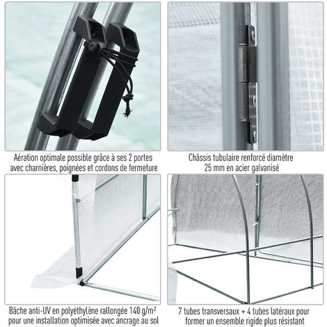 Cette superbe serre de jardin tunnel vous aidera à protéger vos plantes contre les aléas climatiques et les oiseaux. Sa conception et fabrication avec des matériaux de qualité vous assureront un parfait rendement.