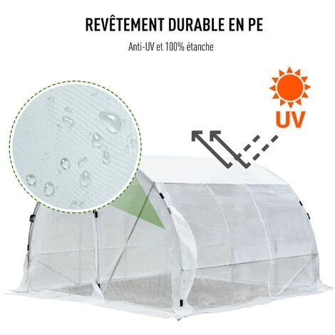 Cette superbe serre de jardin tunnel vous aidera à protéger vos plantes contre les aléas climatiques et les oiseaux. Sa conception et fabrication avec des matériaux de qualité vous assureront un parfait rendement.