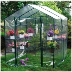 Serre De Jardin Avec Bâche Armée Transparent PVC Gardiun Double Leaf 143x143x195 Cm