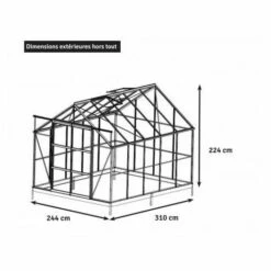 LA MAISON DU JARDIN Serre En Verre Trempé 4 Mm – 86 – 4,7 M² – Laqué Aluminium Naturel – Sans Base