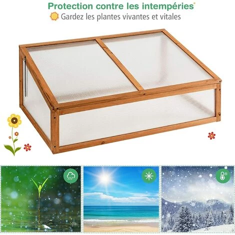 - ★STRUCTURE STABLE ET DURABLE★ Cette mini serre moderne est fabriquée avec une structure en bois massif, en épicéa naturel, ce qui la rend très stable et solide. Avec le vernis transparent sur la surface, il est imperméable et résistant à l’usure, en plus, il offre un toucher lisse et confortable.