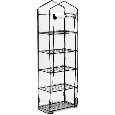 – 5 étagères grillagées pour entreposer les jeunes plantes et les herbes aromatiques en pot