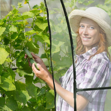 Savourez les légumes de votre propre jardin tels que des tomates, des concombres et des poivrons. Avec cette serre, cultivez vous-même les plantes qui aiment la chaleur. La bâche translucide créé un climat chaud et humide et protège vos plantes du vent, des précipitations et du froid. La porte enroulable assure un apport d’air optimal et un accès facile à vos plantes. Enfin, la forme du toit permet à l’eau de pluie de bien s’écouler.