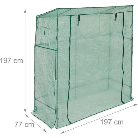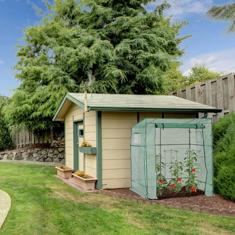 Avec cette serre, à vous les tomates goûtues ! Elle crée les conditions idéales pour la culture des légumes qui aiment la chaleur : de la chaleur sèche. Cette serre de jardin est constituée d’une structure solide en fer et d’un toit incliné permettant non seulement l’évacuation de l’eau de pluie, mais également une bonne répartition de la chaleur dans la serre, grâce à sa bâche en PE translucide. Les deux fenêtres latérales avec filet permettent d’évacuer l’humidité et d’éviter les parasites. La porte est large et haute, ce qui facilite l’accès et le soin de plantes.