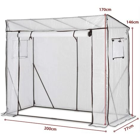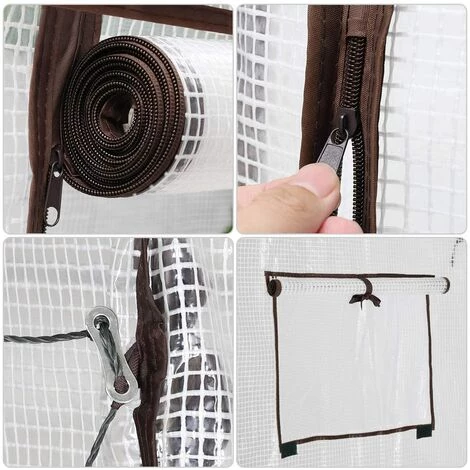 - couverture PE blanche 140g / m²: résistantes à la corrosion, durables et robustes, les grilles blanches renforcent la structure, rendant la couverture plus durable et résistante à l’usure. 100% imperméable et anti-uv pour permettre à votre plante et à vos fleurs d’absorber plus de soleil afin de laisser assez de place à leur croissance. La porte à glissière à enrouleur offre un accès facile et une ventilation filtrée pour une circulation d’air optimale.