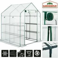 GARDEBRUK Serre De Jardin Avec Bâche Polyéthylène 195x143x143cm Serre 2 M² 4 Fenêtres
