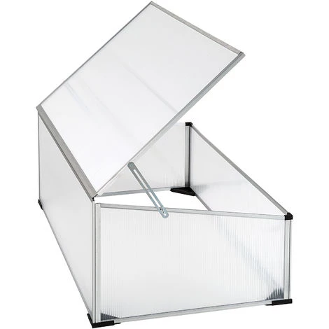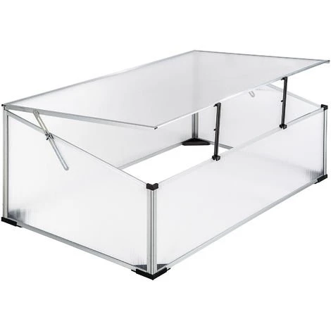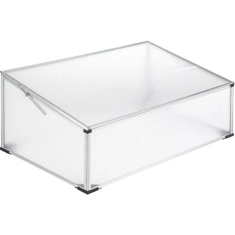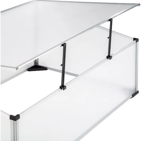 Châssis de Jardin, Mini Serre de Culture, de Jardin en Aluminium et en Plastique TECTAKE. • Le châssis de couche vous permet de cultiver vos jeunes plants et vos jeunes pousses même pendant les saisons froides. • Les plaques alvéolaires de 4 mm d’épaisseur assurent un éclairage suffisant et protègent vos jeunes pousses contre le vent et les intempéries. • Pour réguler la température et permettre une bonne aération, vous pouvez maintenir le couvercle ouvert grâce à 2 charnières métalliques situées sur le côté. • Pour régler l’ouverture du couvercle, vous pouvez installer sur le devant du châssis 2 éléments de soutien. • Le châssis de jardin possède des pieds en plastique stables qui l’empêchent de s’enfoncer dans la terre. • Le système pratique d’emboîtement et un cadre stable en aluminium facilite le montage. • Le châssis de couche est fonctionnel et durable.