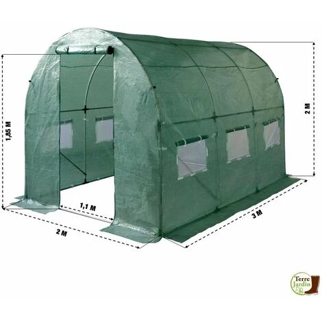 Serre de jardin tunnel 6m2 avec bâche verte renforcée
