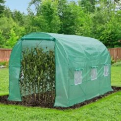 Protégez vos plantes contre le vent, la pluie, le soleil et les oiseaux avec cette housse de remplacement de serre. La couverture de serre est fabriquée en PE, qui est plus lourd que le tissu maillé standard. Par conséquent, elle résiste encore mieux aux influences environnementales. Cette toile de serre est équipée de 4 fenêtres pour la ventilation et une porte ainsi. Si vous recherchez une couverture de remplacement pour votre serre, cette couverture pratique est un excellent choix.