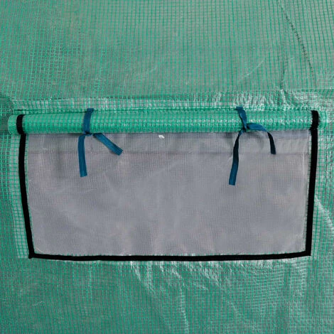 La serre comporte une porte d’entrée avec double fermeture éclair, qui peut être enroulée, pour faciliter l’entrée et la ventilation. 8 fenêtres (4 de chaque côté) avec des housses enroulables sont également parfaites pour la ventilation croisée les jours chauds.