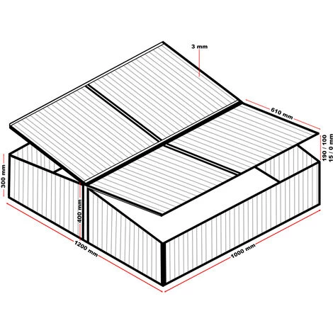 | Dimensions | Dimension totale : 100x120x40 cm Taille du toit : 30 cm Épaisseur des panneaux : 4 mm |
